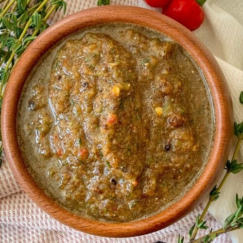 This homemade Jamaican jerk seasoning recipe is a spicy marinade of fresh herbs and spices similar to traditional Jamaican jerk but without added sugar. Add this versatile sauce to everything from meat to veggies.
